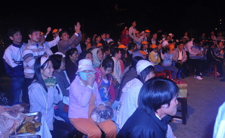 Khán giả chăm chú thưởng thức những tiết mục cây nhà lá vườn