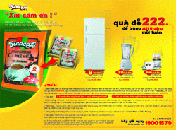 Đồng thời với việc tặng 2 gói bên trong mỗi bịch, Vinacafé còn dành 888 giải thưởng, chia đều trong 4 tuần cho những bạn may mắn khi tham gia chương trình giải trí có thưởng từ ngày 24 /10 đến 21/11/2004. Cách thức tham gia chương trình rất đơn giản. Bạn có thể là người may mắn nhận giải thưởng giá trị của Vinacafé nếu tham gia trả lời 2 câu hỏi vui sau đây: Câu 1: Vinacafé hiện đang khuyến mãi 1 hay 2 gói trong mỗi bịch cà phê sữa ? Câu 2: Bạn dự đoán có bao nhiêu người tham gia chương trình tuần này? Có hai cách tham gia trả lời: Từ bất kỳ số thuê bao cố định hay di động nào trên toàn quốc, bạn chỉ cần gọi 19001579 nghe tín hiệu kết nối, bấm tiếp phím 2 và sau đó làm theo chỉ dẫn của hộp thư thoại. Cước phí thống nhất chung trong toàn quốc là 600 đ/phút nếu gọi từ điện thoại bàn, 1000 đ/phút nếu gọi từ điện thoại di động. Bạn cũng có thể soạn tin nhắn: “vinacafe _”1” hoặc “2” _ số dự đoán” (_ dấu cách; “1” nếu trả lời tặng 1 gói, “2” nếu trả lời tặng 2 gói; số dự đoán: đáp án trả lời câu 2) rồi gửi đến 19001579. Cước phí là 500 đ/tin nhắn. Hàng tuần tính từ 0 giờ ngày Chủ nhật đến 23 giờ ngày thứ Bảy, theo báo cáo của VNPT, Vinacafé sẽ lọc ra danh sách 222 câu trả lời gần đúng nhất để trao thưởng. Tuỳ theo mức độ chính xác của đáp án trả lời, bạn sẽ nhận được 1 trong những giải sau đây: 2 giải nhất, mỗi giải 01 tủ lạnh SANYO 201 lít (trị giá 4,5 triệu đồng) và 20 giải nhì, mỗi giải 1 máy xay sinh tố NATIONAL 1,25 lít (trị giá 500 ngàn đồng), 200 giải ba, mỗi giải một bộ 6 tách sứ Vinacafé + 6 ly thủy tinh cao cấp Vinacafé (trị giá 100 ngàn đồng). Nếu bạn không trúng thưởng tuần này, hãy tham gia trong tuần kế tiếp. Mong muốn bày tỏ lời cảm ơn chân thành của mình với NTD cả nước, Vinacafé không đặt mục tiêu trọng tâm là tăng doanh số trong đợt khuyến mãi này. Ước mong lớn nhất của Vinacafé là tạo được hình ảnh đẹp trong lòng người tiêu dùng cả nước về Vinacafé chân thành, trung thực và nỗ lực vươn lên, đồng thời biết trân trọng những giá trị không thể đo đếm, lượng hoá – đó chính là cảm tình và lòng tin của người tiêu dùng cả nước. Tin khác