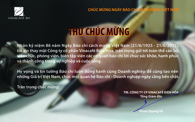Nhân kỷ niệm 86 năm Ngày Báo chí cách mạng Việt Nam, ông Phạm Quang Vũ - Tổng GĐ Vinacafé Biên Hòa, chúc mừng những Người làm báo Việt Nam.