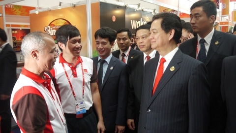 Thủ tướng Nguyễn Tấn Dũng ghé thăm gian hàng VCF tại CAEXPO 2013 và nói chuyện với
